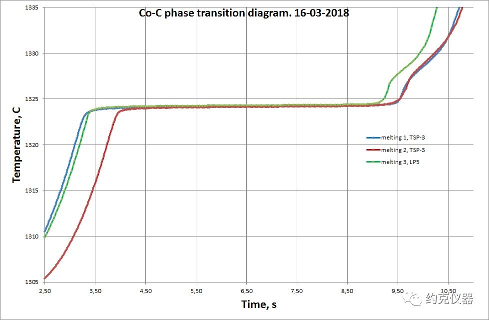 BB3300-PyroG32黑体复现高温共晶点Co-C的相变曲线图,由LP5和TSP-3测量得到Co-C的熔化温度为1324.322℃。