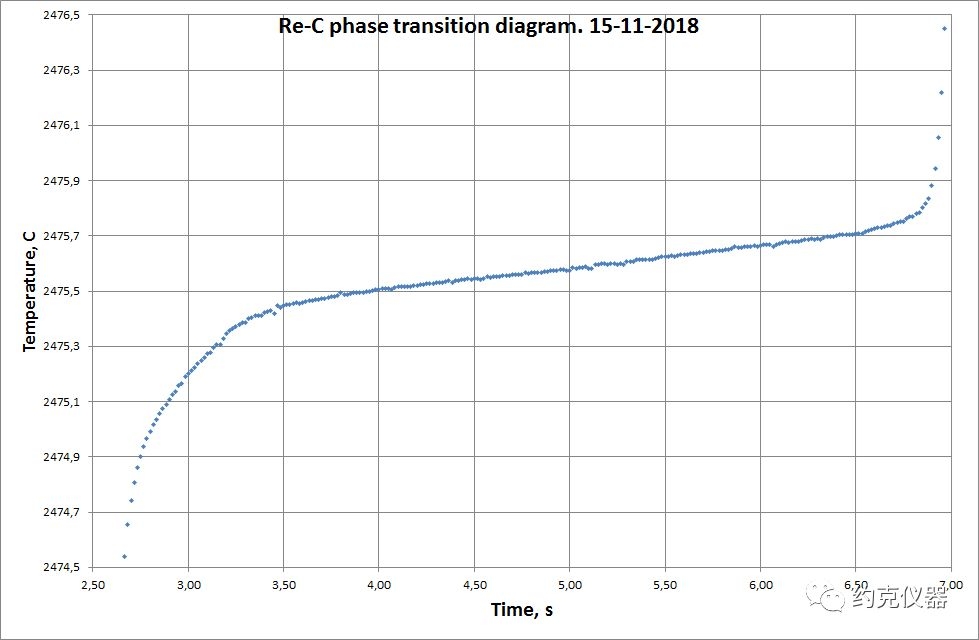 BB3300-PyroG32黑体复现高温共晶点Re-C的相变曲线图,由LP5和TSP-3测量得到Re-C的熔化温度为2475.621℃。